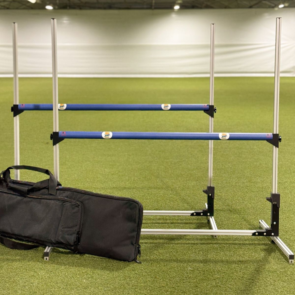 Hindrene følger gjeldende konkurranseregler og passer perfekt til hjemmetrening og til bruk på stevner. Det følger med blå hoppepinner for optimal synlighet for hunden. Hindrene er lette og praktiske, og passer alle som vil trene med presisjon og kvalitet. Siden det er stort fukus på lav vekt, er det viktig å behandle de forsiktig.