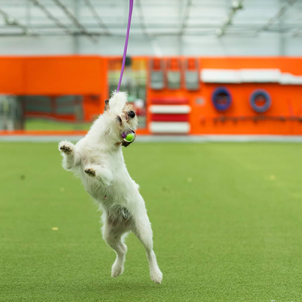 Jaktleke fra Doggie-zen med saueskinn, Amazing pipeball og langt håndtak med strikk.