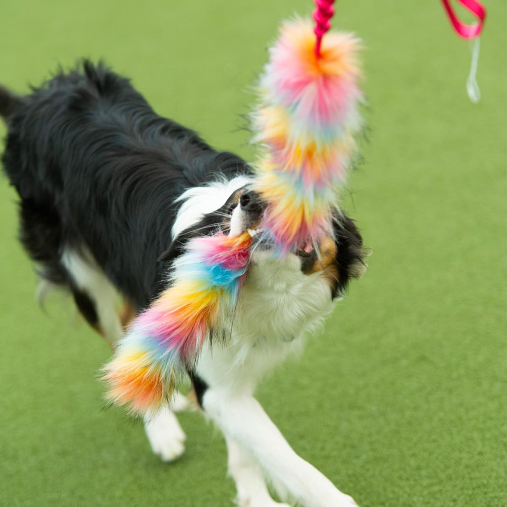 Hundeleke med lang fluffy og slitesterk fuskepels og strikk. Leken er perfekt for større hunder eller kampglade mindre hunder.