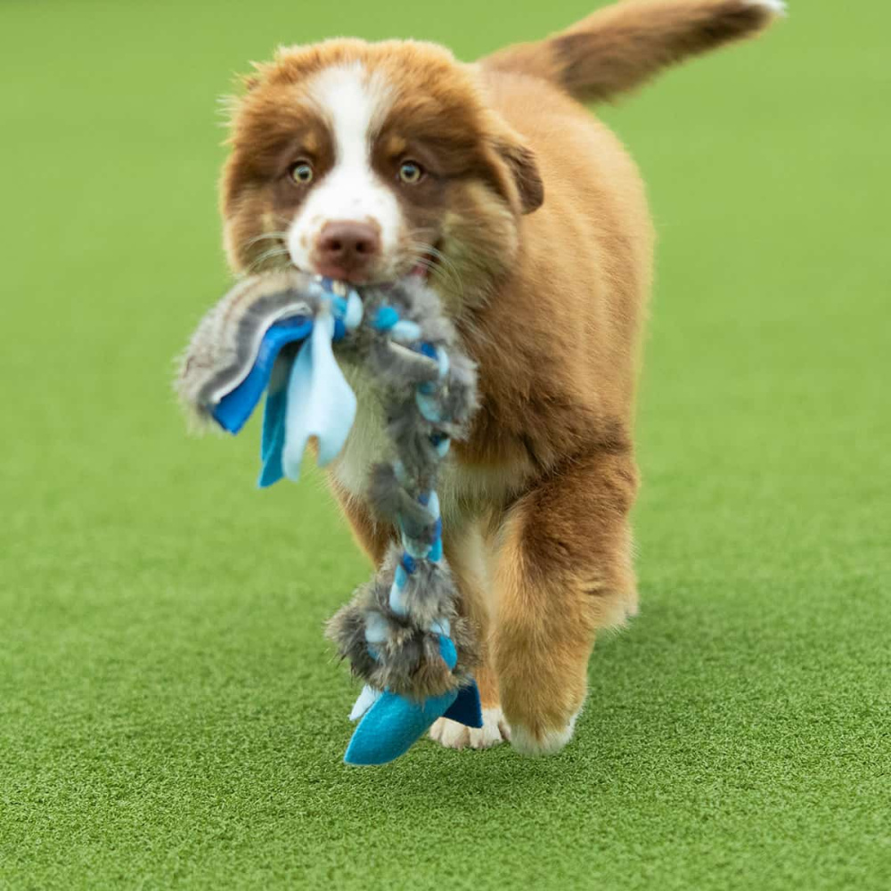 Liten og nett kampleke til valper og små hunder. Hundeleken består av kaninpels og fleece flettet sammen, som gir en elastisk effekt. Deltakere på valpekurs kjøper ofte to av denne til innlæring av byttelek.