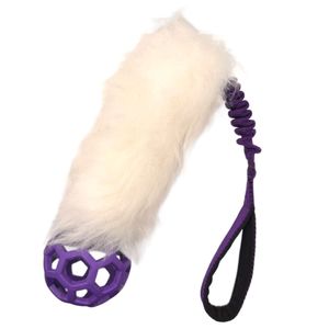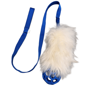 Kampleke fra Zayma med strikk i håndtaket, saueskinn og Hol-ee roller nettingball i enden.